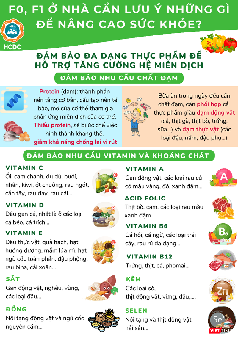 - Nhóm thực phẩm chứa Flavonoid: giúp tăng khả năng chống oxy hóa, tăng cường miễn dịch của cơ thể và đã được chứng minh là có thể ức chế các hoạt động của nhiều loại vi-rút: quả họ dâu (berries), trà xanh, cần tây, hành tây, trái cây họ cam chanh bưởi, các loại rau gia vị (như các loại húng, tía tô), súp lơ xanh, cải xanh, táo, gừng, tỏi, nghệ, các loại rau lá màu xanh, dầu olive, đậu nàng, …