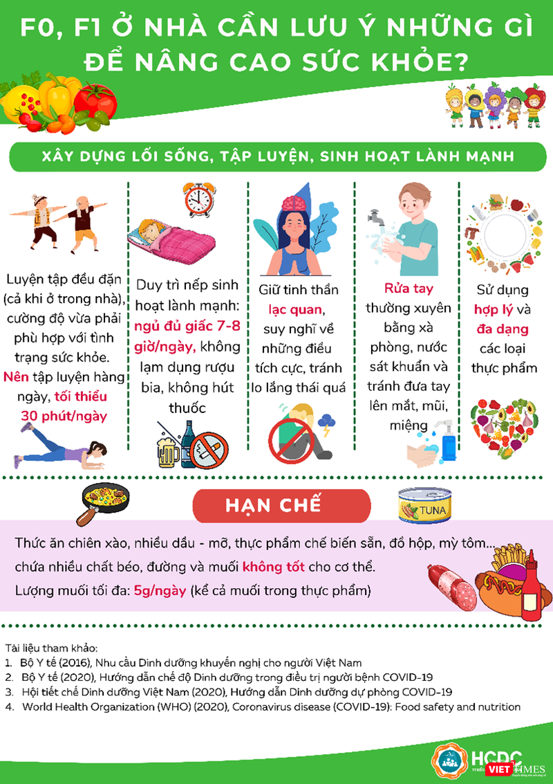 - Hạn chế thức ăn chiên xào, nhiều dầu - mỡ, thực phẩm chế biến sẵn, đồ hộp, mỳ tôm, ... chứa nhiều chất béo, đường và muối không tốt cho cơ thể. Lượng muối tối đa: 5g/ngày (kể cả muối trong thực phẩm).