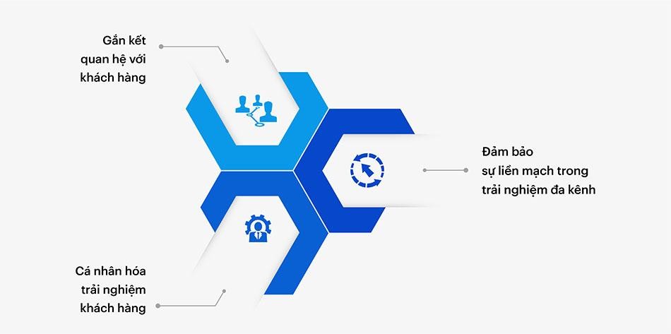Chiến lược này đòi hỏi doanh nghiệp cần thấu hiểu khách hàng của mình, đồng thời đào sâu suy nghĩ, sáng tạo nhằm xây dựng các phương thức tiếp cận hiệu quả. Thay vì chỉ bổ sung các công cụ số cho công tác tiếp thị, bán hàng hoặc dịch vụ khách hàng, doanh nghiệp còn mang tới những trải nghiệm xuyên suốt, liền mạch, dễ dàng cho người dùng .