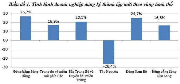 Duy nhất vùng Tây Nguyên lượng doanh nghiệp lập mới giảm 26,4% so với cùng kỳ năm 2014.