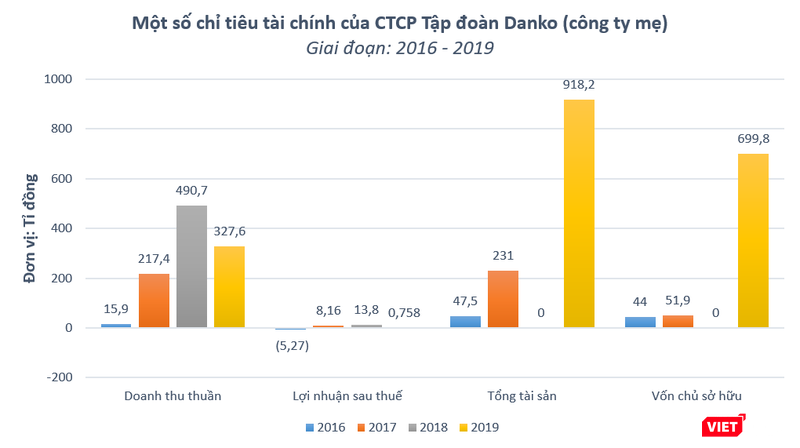 Dữ liệu của VietTimes cho thấy, năm 2017, Danko Group (công ty mẹ) ghi nhận doanh thu thuần đạt 217,4 tỉ đồng, gấp 13,6 lần so với cùng kỳ năm trước; lợi nhuận sau thuế chuyển từ lỗ 5,27 tỉ đồng (năm 2016) thành lãi 8,16 tỉ đồng.