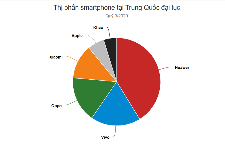 Theo hãng nghiên cứu thị trường Canalys, doanh số smartphone tại Trung Quốc đại lục đạt 83 triệu máy trong quý vừa qua, giảm 15% so với mức 97,7 triệu máy của quý III/2019. Ba nhà sản xuất lớn nhất thị trường là Huawei, Vivo và Oppo, nhưng cũng là những hãng có mức giảm doanh số nhiều nhất, lần lượt là 18%, 13% và 18%.
