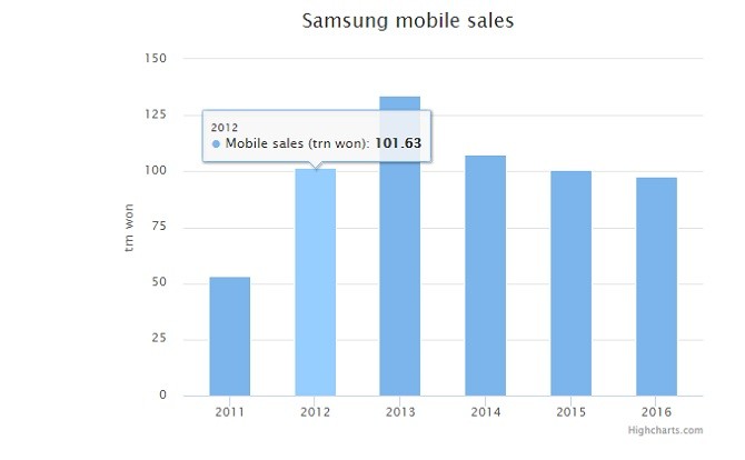 Việc bán hàng điện thoại di động của Samsung trong Quý 4/2016 tăng nhẹ so với Quý 3 nhưng đã giảm so với cùng kỳ năm ngoái. Lợi nhuận tại bộ phận viễn thông, trong đó chủ yếu là bán hàng điện thoại di động tăng nhẹ.