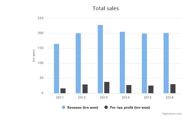 Kết quả kinh doanh trong Quý 4/2016 vừa được công bố hôm thứ Ba cho thấy doanh thu từ điện thoại di động đã giảm từ 100,5 tỷ won xuống còn 97,8 tỷ won. Mặc dù sự suy giảm này không cao hơn so với mức dự đoán nhưng đây cũng là mức thấp nhất của công ty tính từ năm 2011.