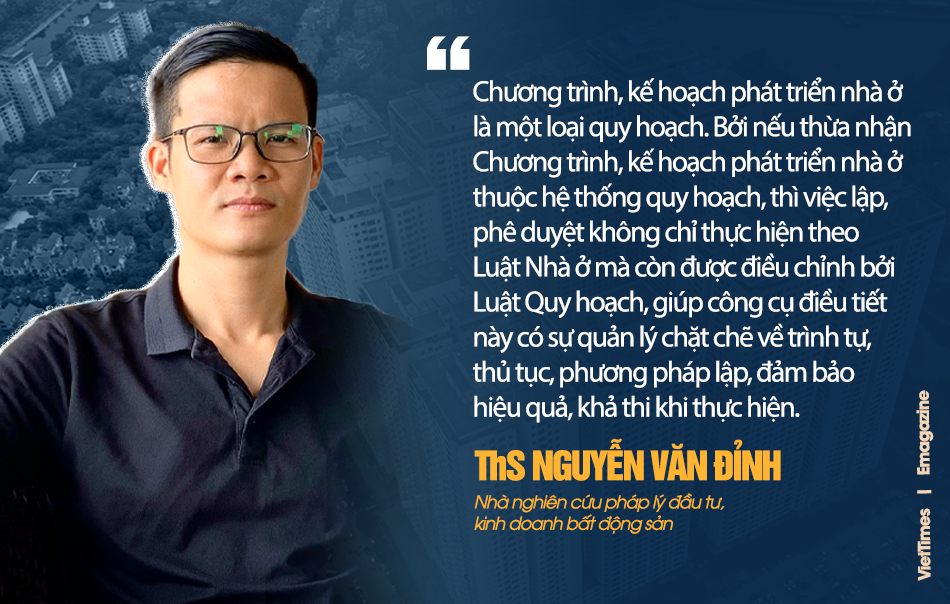Một cách tổng quát, tôi cho rằng Chương trình, kế hoạch phát triển nhà ở là một loại quy hoạch ngành nhưng nằm ngoài hệ thống quy hoạch, dẫn đến thiếu quy định về trình tự, thủ tục lập, về lấy ý kiến cơ quan, tổ chức, cá nhân, cộng đồng dân cư có liên quan hay phương thức công khai để các doanh nghiệp tiếp cận.