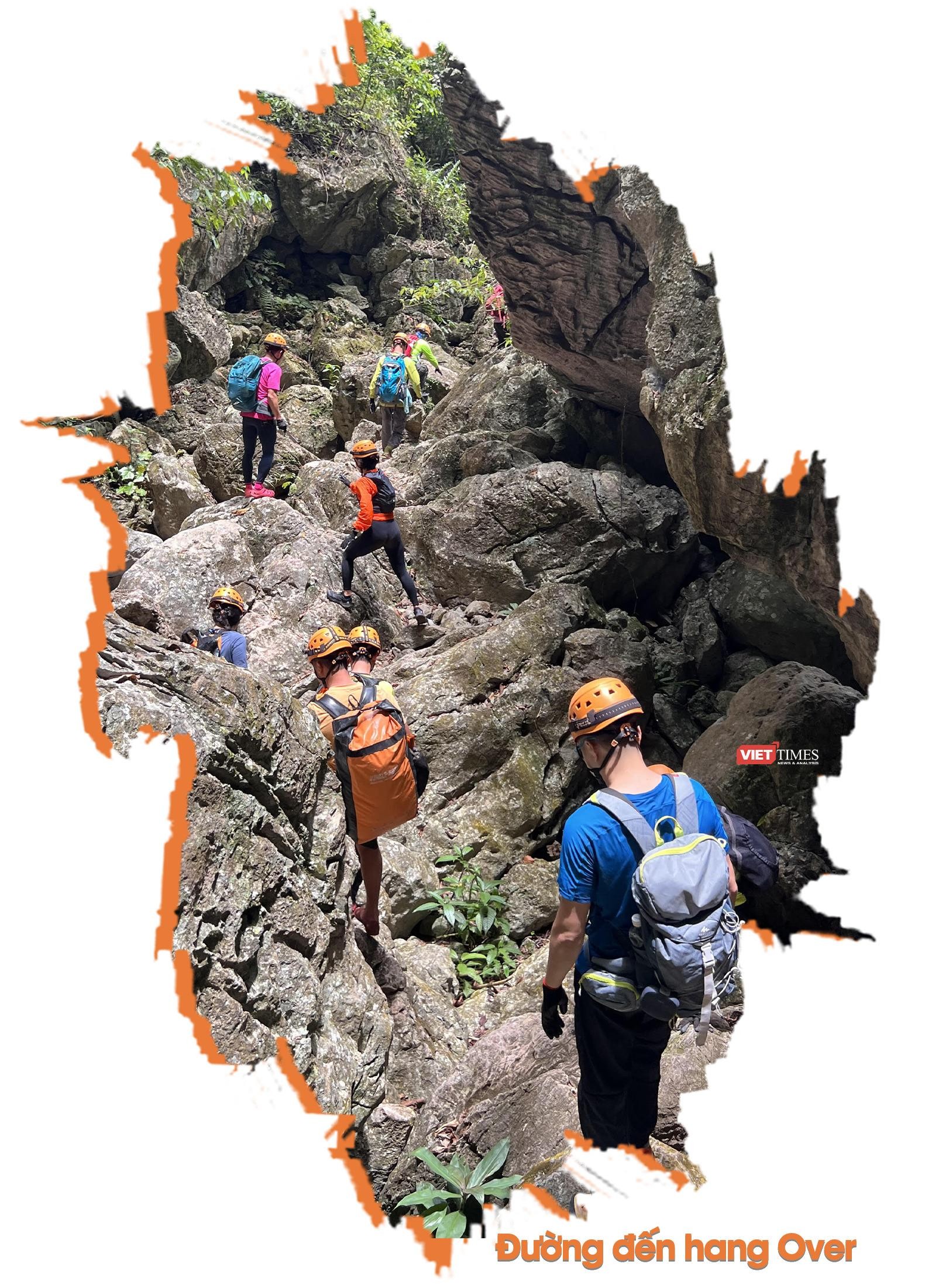 Chia tay hang Hổ, chúng tôi tiếp tục khám phá hang Over, lớn thứ 6 trên thế giới có độ dài hơn 3,2km, sâu 104m và điểm rộng nhất lên tới 125m. Nguồn gốc tên hang Over: là do có một thành viên trong đoàn khảo sát, thám hiểm tình cờ phát hiện ra một hang mới trong tình trạng bị "say nguội" từ tối hôm trước mà trong tiếng anh gọi là "hangover", như một cách chơi chữ, từ đó hang có tên là Over.