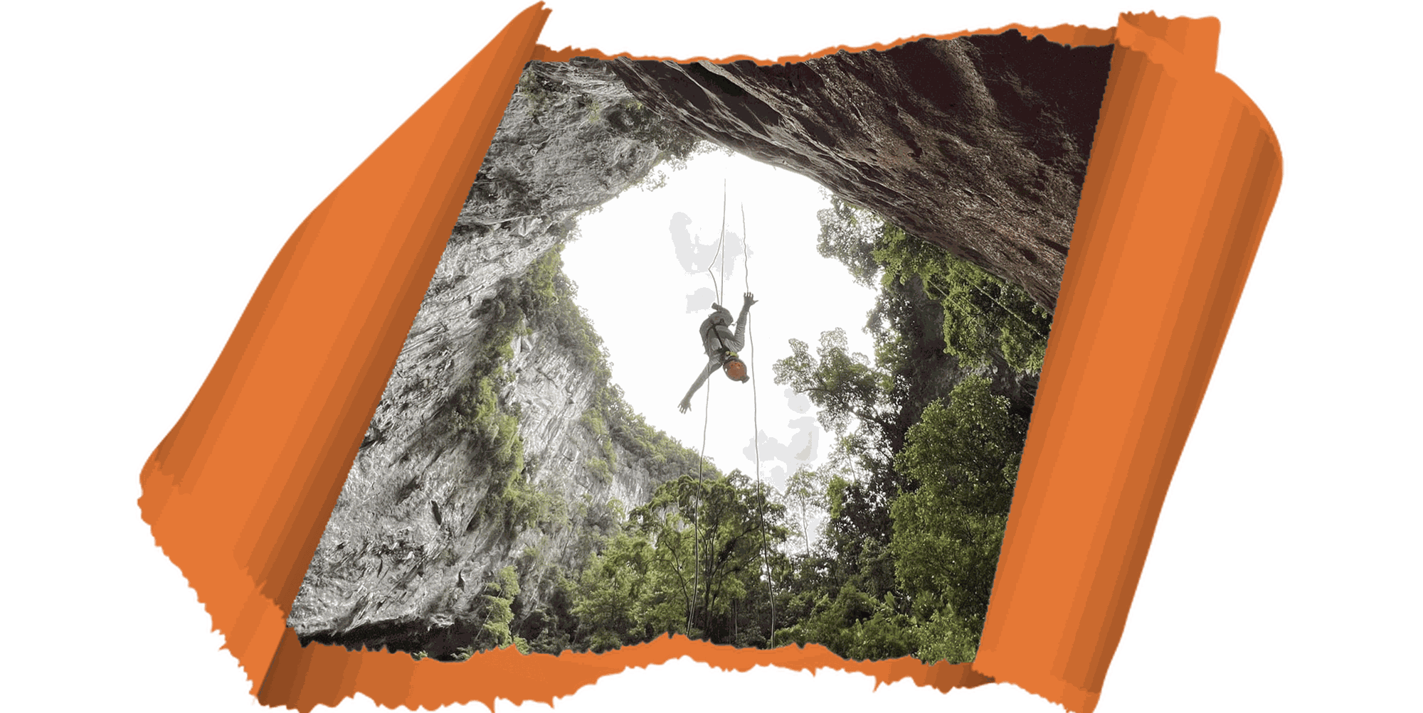 Hít một hơi thật sâu, tôi vào vị trí để bắt đầu đu dây xuống từ đỉnh miệng hố.
