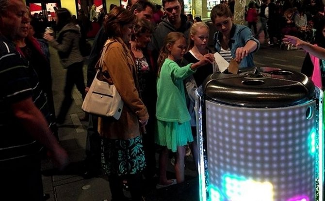 Thùng rác thông minh có tên TetraBIN là sản phẩm sáng tạo của một startup có tên Sencity tại Brooklyn, New York, Mỹ. Xuất phát từ quan niệm của nhiều người không thích những thùng rác dơ dáy ở bên đường và vì nhiều lý do khác, Sencity đã tìm cách biến chúng trở nên thu hút hơn bao giờ hết với những màn hình LED đặc sắc.