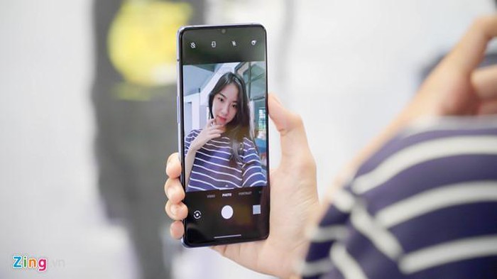 Giao diện chụp hình được thiết kế khá đơn giản. Người dùng có thể chuyển đổi nhanh giữa 3 chế độ góc rộng, bình thường và telephoto với một phím bấm. Máy có tốc độ lấy nét và chụp hình khá nhanh. Hình ảnh cho ra có xu hướng màu ấm, nịnh mắt. Camera selfie có độ phân giải 16 MP, tích hợp sẵn các chế độ làm đẹp.