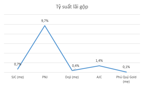 Rõ nét nhất là trường hợp của PNJ, tỷ suất lợi nhuận gộp năm 2014 của doanh nghiệp này lên tới 9,7% trong khi của SJC là 0,7% hay Doji chỉ đạt 0,4%.