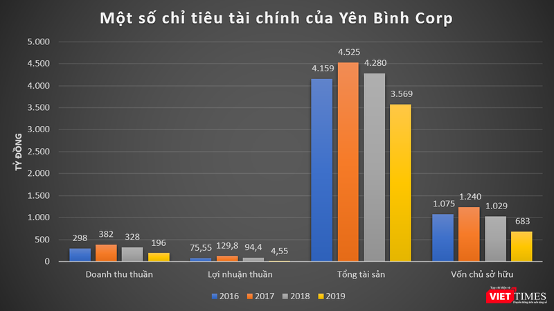 Nhưng năm 2019, doanh thu thuần và lợi nhuận thuần của Yên Bình Corp chỉ đạt lần lượt 196 tỉ đồng và 4,55 tỉ đồng, tương ứng giảm 40% và 95% so với năm 2018.