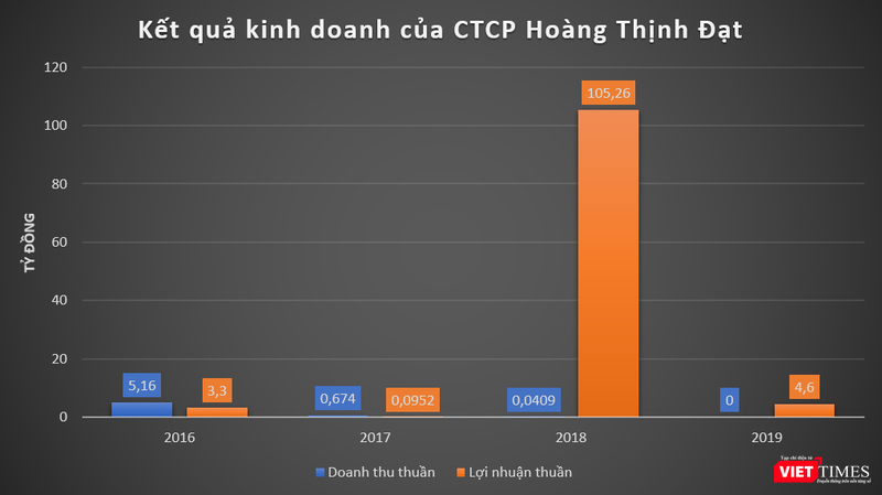 Như năm 2018, doanh thu thuần của Hoàng Thịnh Đạt chỉ là 40,9 triệu đồng, trong khi mức lãi thuần lại lên đến 105,26 tỉ đồng./.