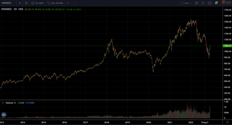 Thị trường chứng khoán (TTCK) Việt Nam vừa ghi nhận tuần giao dịch đầy hứng khởi, khi chỉ số VN-Index tăng tới 108,55 điểm lên 1.080 điểm, tương đương mức tăng 11,17% chỉ trong một tuần giao dịch từ ngày 28/11 – 2/12/2022.