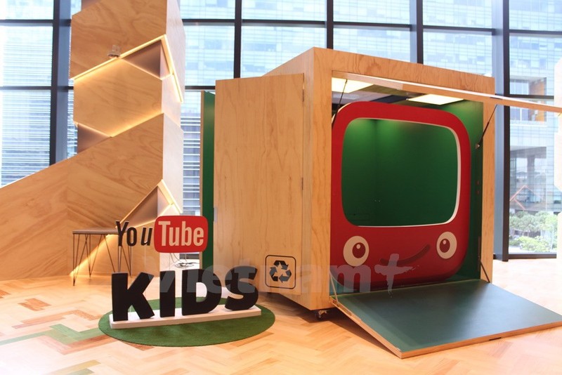 Vừa bước qua cổng lễ tân là khu vực vui chơi dành cho trẻ em, phía trước 32 màn hình LCD chiếu các khung cảnh khác nhau.(Ảnh: Mỹ Bình/Vietnam+)