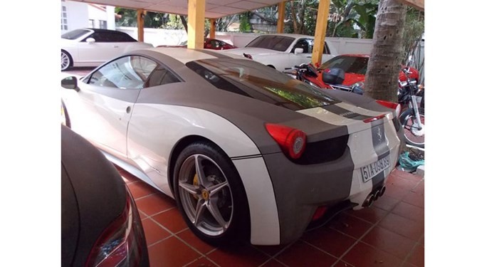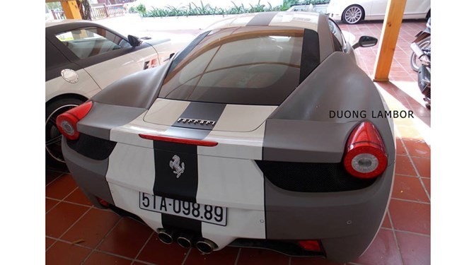 Chiếc Ferrari 458 Italia màu trắng duy nhất tại Việt Nam nay đã được sơn lại với tông màu đen trắng giống với chiếc Mercedes SLS AMG.