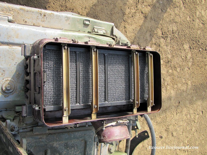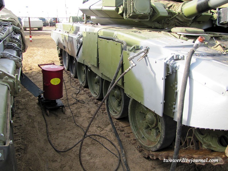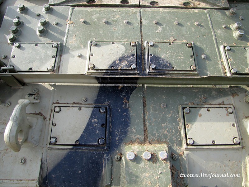 Thay mỡ cho bánh chịu nặng, có thể nhìn rõ độ dày của tấm chắn đạn hiệu ứng nổ lõm.