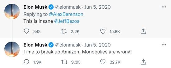 Ví dụ, năm ngoái, cửa hàng sách điện tử Amazon Kindle đã gỡ bỏ một cuốn sách liên quan đến COVID-19 vì vi phạm chính sách, nhưng không nêu rõ cụ thể là gì. Musk liên tục đăng dòng tweet mang đậm tính chất "cà khịa", kêu gọi chia tách Amazon với danh nghĩa chống độc quyền.