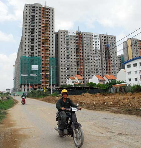 Thi công xây dựng chung cư tại phường Bình Khánh, quận 2. Ảnh: HTD