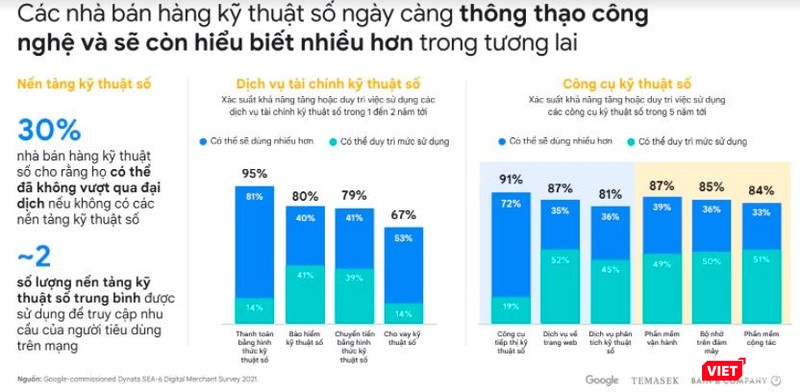 Về các doanh nghiệp vừa và nhỏ của Đông Nam Á, 1/3 số người Việt tham gia ứng dụng kỹ thuật số để kinh doanh tin rằng họ sẽ không thể sống sót sau đại dịch nếu không có các nền tảng kỹ thuật số.