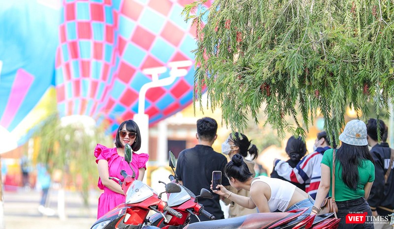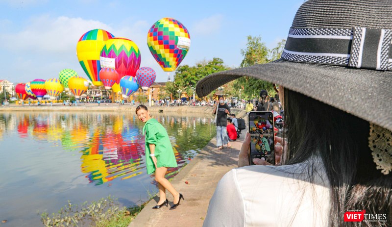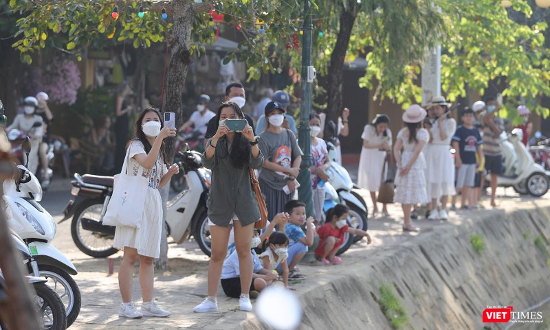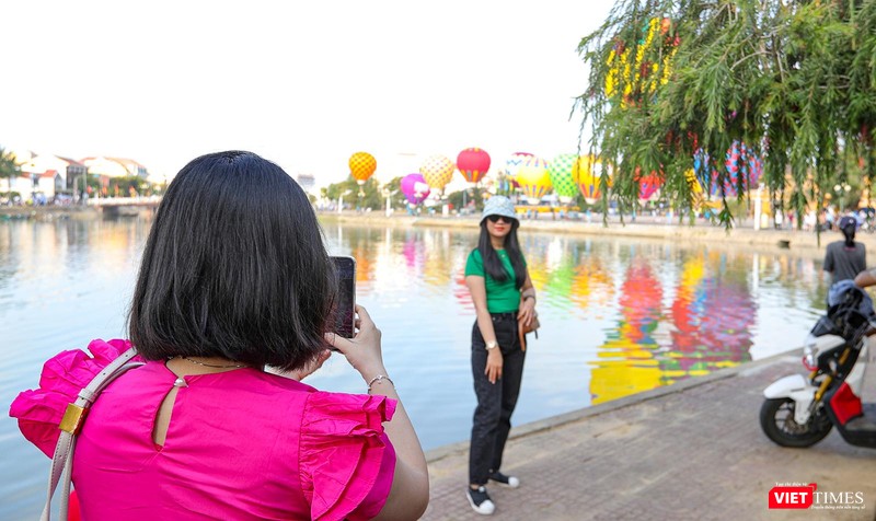 Hứng thú với sự kiện lần đầu tiên được tổ chức tại Hội An, rất đông du khách và người dân tập trung dọc hai bên bờ sông Hoài để chiêm ngưỡng cũng như checkin với những khinh khí cầu đủ màu sắc này.