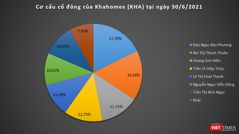 Tính đến cuối quý 2/2021, Khahomex có quy mô vốn điều lệ 141,2 tỉ đồng. Trong đó, bà Đào Ngọc Bảo Phương đứng tên 2,5 triệu cổ phần, sở hữu 17,7% vốn KHA, tiếp đến là Bùi Thị Thanh Thuần (16,58% VĐL); Hoàng Sơn Điền (12,75% VĐL); Trần Lê Diệp Thúy (12,75% VĐL); Lê Thị Hoài Thanh (11,04% VĐL); Nguyễn Ngọc Viễn Đông (10,62% VĐL); và Trần Thị Bích Ngọc (10,62% VĐL). Ông Hoàng Sơn Điền là Tổng giám đốc kiêm người đại diện theo pháp luật tại CTCP Capella Global Group.