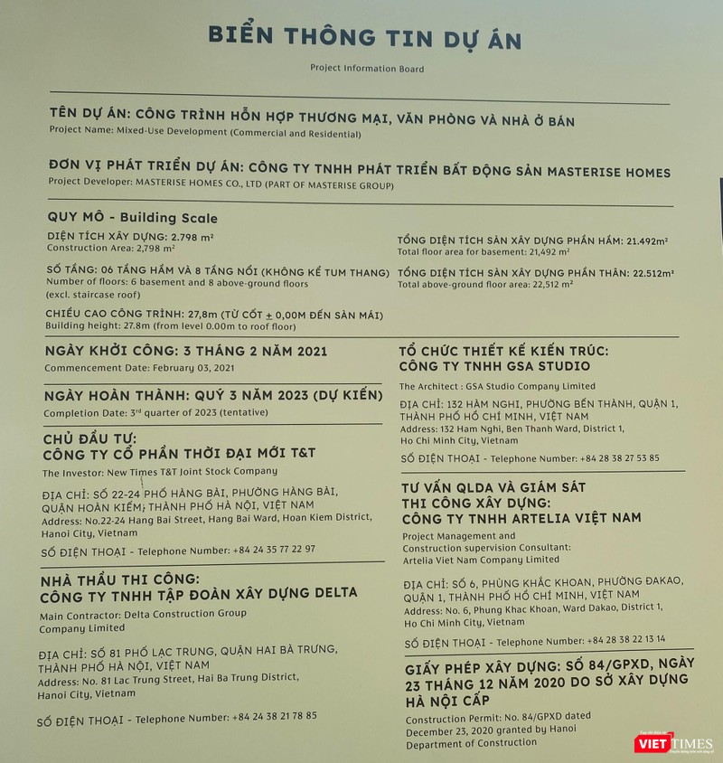 Dự án này cách hồ Hoàn Kiếm chỉ khoảng 100m, có quy mô 6 tầng hầm và 8 tầng nổi, bao gồm tổ hợp trung tâm thương mại, văn phòng cao cấp và căn hộ hạng sang, được xây dựng trên khu đất rộng hơn 4.000 m2.