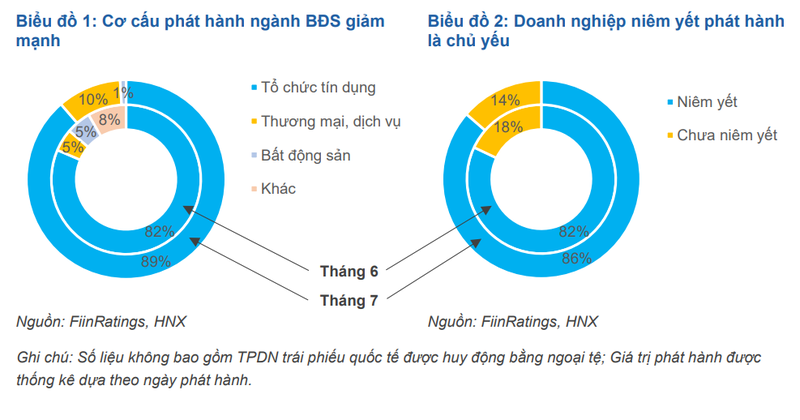 Ở hướng ngược lại, hoạt động phát hành của các tổ chức tín dụng (TCTD) tiếp tục dẫn đầu thị trường tháng 7/2022 với tổng cộng 21 đợt phát hành, đạt quy mô 19.490 tỉ đồng, chiếm 89% thị trường sơ cấp.