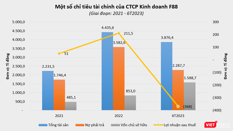 Trong nửa đầu năm 2023, F88 ghi nhận doanh thu đạt 1.229 tỉ đồng, tăng 52% so với cùng kỳ năm trước, nhưng lỗ sau thuế lên tới 368 tỉ đồng.