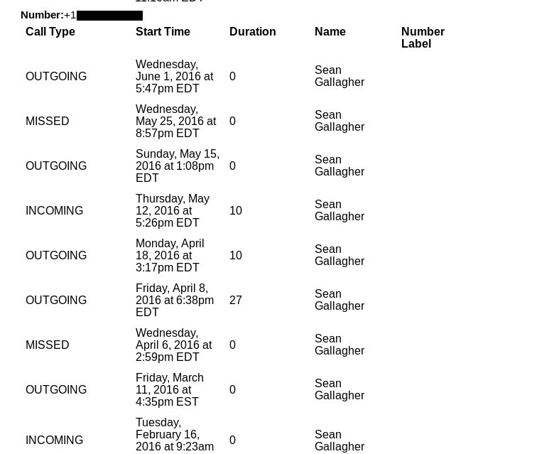 Tập tin tải về không chỉ chứa thông tin cá nhân của người dùng mà còn bao gồm số điện thoại, thời lượng mỗi cuộc gọi cùng dữ liệu tin nhắn SMS và MMS kể từ năm 2015. Khảo sát trên nhiều người dùng Android, The Verge nhận được rất nhiều phản hồi cho biết tập tin họ tải về cũng chứa thông tin về lịch sử cuộc gọi và tin nhắn từ cách đây nhiều tháng/năm.