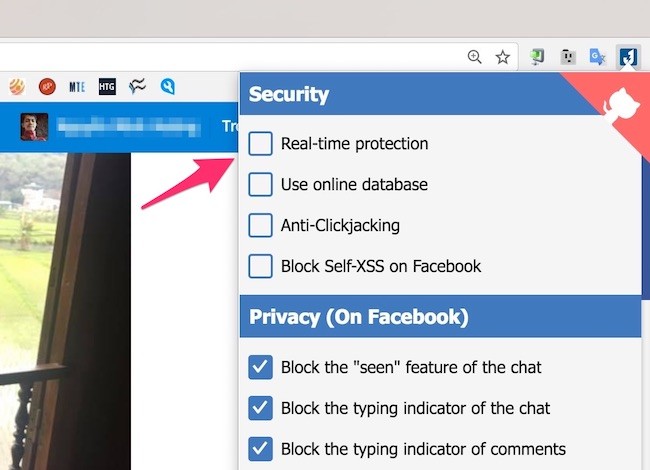 Để tránh truy cập nhầm vào các trang web giả mạo, bạn hãy cài đặt thêm tiện ích J2TeaM Security tại địa chỉ https://goo.gl/qwCJgB, tương thích Chrome, Opera, Cốc Cốc, Yandex và các trình duyệt sử dụng mã nguồn mở Chromium. Khi hoàn tất, người dùng chỉ cần nhấp vào biểu tượng của tiện ích ở góc phải trình duyệt, sau đó đánh dấu chọn vào 4 mục nằm trên cùng gồm Real-time protection, Use online database, Anti-Clickjacking và Block Self-XSS on Facebook.