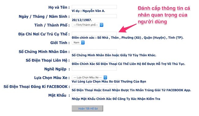 Đa số các trang web giả mạo thường có giao diện tương tự như Facebook, do đó, đã có không ít người nhầm lẫn và tiến hành đăng nhập. Lúc này, kẻ gian sẽ có được thông tin đăng nhập và mật khẩu Facebook của bạn. Chưa dừng lại ở đó, bạn còn phải điền thêm họ tên, ngày tháng năm sinh, địa chỉ, số CMND, số điện thoại, nghề nghiệp và mọi thông tin liên quan đến Facebook để "hoàn tất hồ sơ" nhận thưởng.