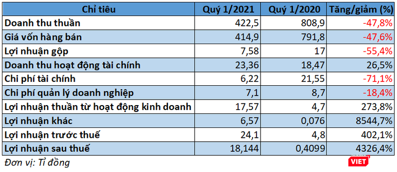 Nhờ đó, Quý 1/2021, ROS ghi nhận lợi nhuận thuần từ hoạt động kinh doanh đạt 17,57 tỉ đồng, tăng 274% so với cùng kỳ năm 2020. Công ty cũng ghi nhận khoản lợi nhuận khác đạt 6,57 tỉ đồng chủ yếu do đánh giá lại tài sản góp vốn vào đơn vị khác.