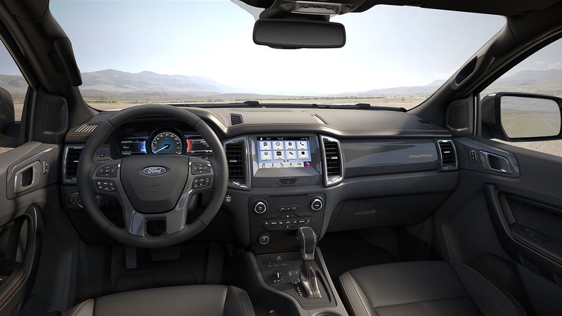 Bên trong, nội thất của Ranger 2018 vẫn sử dụng tông màu đen và làm nổi bật tính thể thao bằng các chi tiết crôm tối màu cùng đường chỉ khâu màu bạc.