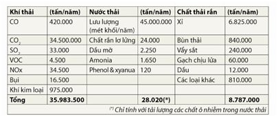 Đó quả là những con số khủng khiếp cho dù xét theo bất cứ nguồn ô nhiễm nào: khí thải (gần 36 triệu tấn/năm), nước thải (trên 28.000 tấn/năm các chất ô nhiễm) hay chất thải rắn (gần 9 triệu tấn/năm). Tất nhiên đây là tải lượng ô nhiễm trước khi được xử