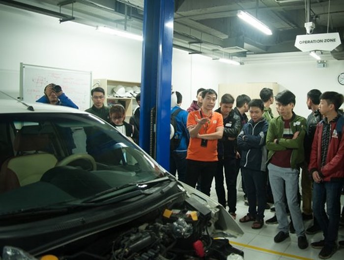 Các sinh viên công nghệ tham dự Cuộc đua số 2017 - 2018 trực tiếp khám phá và trải nghiệm công nghệ xe tự hành do FPT phát triển, tại sự kiện Open Camp diễn ra tháng 1/2018 tại TP.HCM.