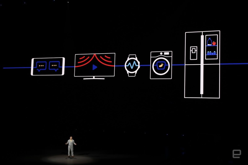 Nhưng ông Koh đứng trên sân khấu không để chỉ nói về Note 9 mới. Ông đã chia sẻ thêm về "tầm nhìn của một tương lai với các thiết bị kết nối liền mạch". Ông muốn nói đến thiết bị nhà thông minh?