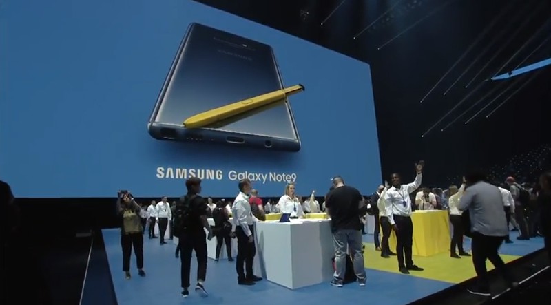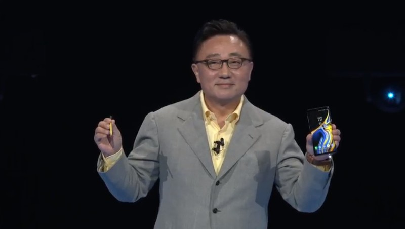 Ông Koh Dong Jin cầm trên tay chiếc Note 9 giới thiệu trước những người ngồi trong khán phòng, chính thức ra mắt Galaxy Note 9