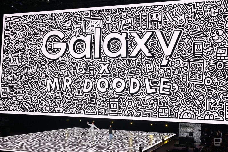 Ông Jonathan Wong mời họa sỹ Doodle lên sân khấu sử dụng bút S Pen để vẽ. Đây là bức vẽ hài hước đầu tiên của họa sỹ Doodle