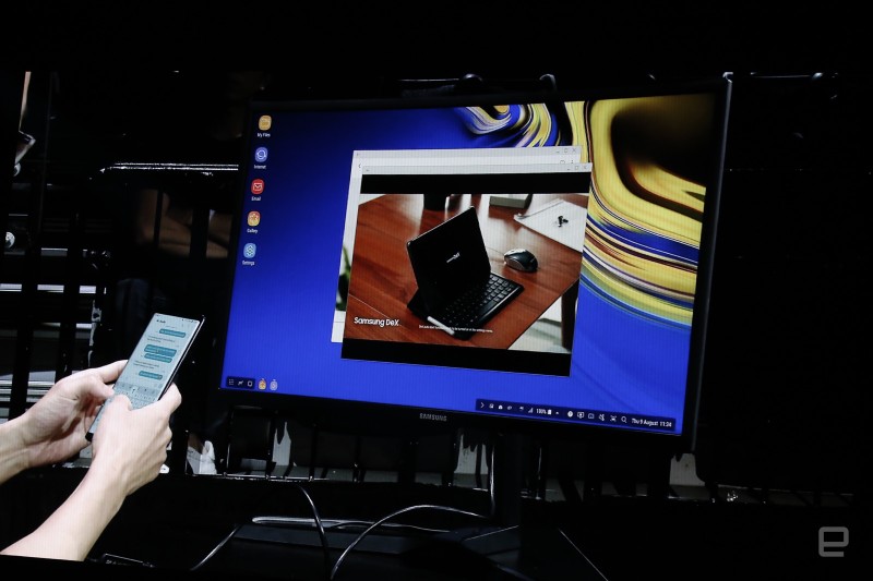 S Pen là một công cụ hữu ích phục vụ cho công việc của người dùng Note 9, Wong nói. Nhưng đó không phải là cách duy nhất để hoàn thành công việc. Ông Jonathan Wong giới thiệu về Samsung DeX thế hệ mới. Thay vì là một cái dock, bây giờ DeX giống như một sợi dây một đầu cắm vào Note 9, một đầu cắm vào màn hình PC, giúp người dùng có thể sử dụng Note 9 như một chiếc PC.
