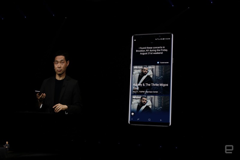 Ông Ji So Yi, đại diện cho Samsung lên trình bày về Bixby phiên bản mới. Ông dùng các câu lệnh để hỏi Bixby về các buổi hòa nhạc ở Brooklyn vào ngày Quốc tế Lao động. Bixby đã trả lời chính xác