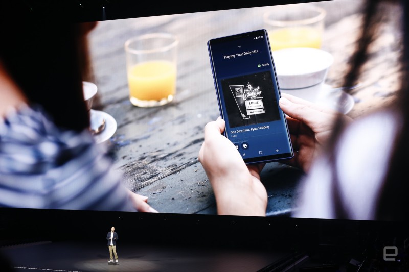 Ông Daniel Ek, CEO của hãng cung cấp dịch vụ âm nhạc trực tuyến Spotify lên sân khấu để nói về sự hợp tác giữa Samsung và Spotify. Với sự hợp tác này, tất cả các thiết bị của Samsung sẽ hỗ trợ nghe nhạc qua dịch vụ Spotify