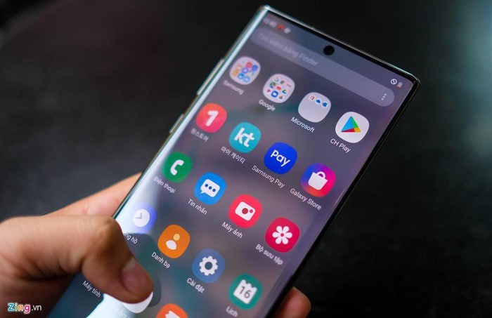 Galaxy Note10+ 5G sở hữu màn hình 6,8 inch, độ phân giải 2K. Màn hình của máy hỗ trợ đồng thời video HDR10+ và vân tay siêu âm.