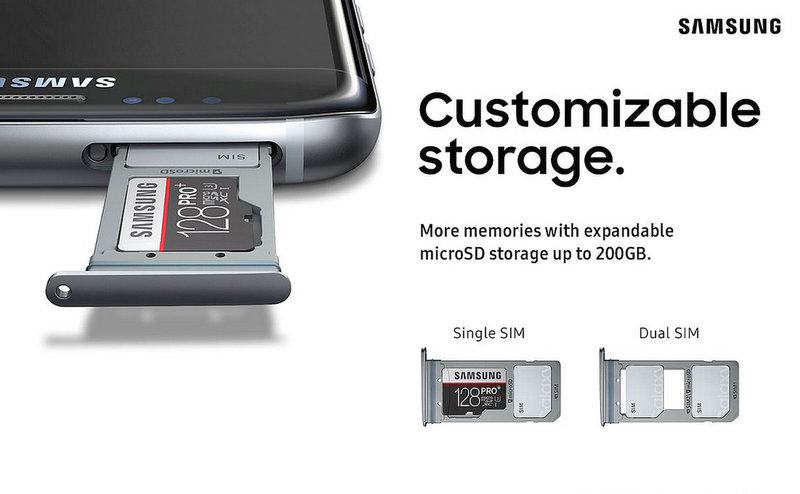 Trên trang giới thiệu sản phẩm, Samsung hé lộ thêm một chi tiết quan trọng của Galaxy S9, với ký hiệu SM-G960F/DS. Trong đó DS rất có thể là phiên bản 2 sim của mẫu smartphone này. Tương tự như Galaxy Note 8 và S8 Plus, khi người dùng sử dụng 2 sim song song trên khay sim kép thì sẽ không thể sử dụng khe cắm thẻ nhớ Micro-SD mở rộng.