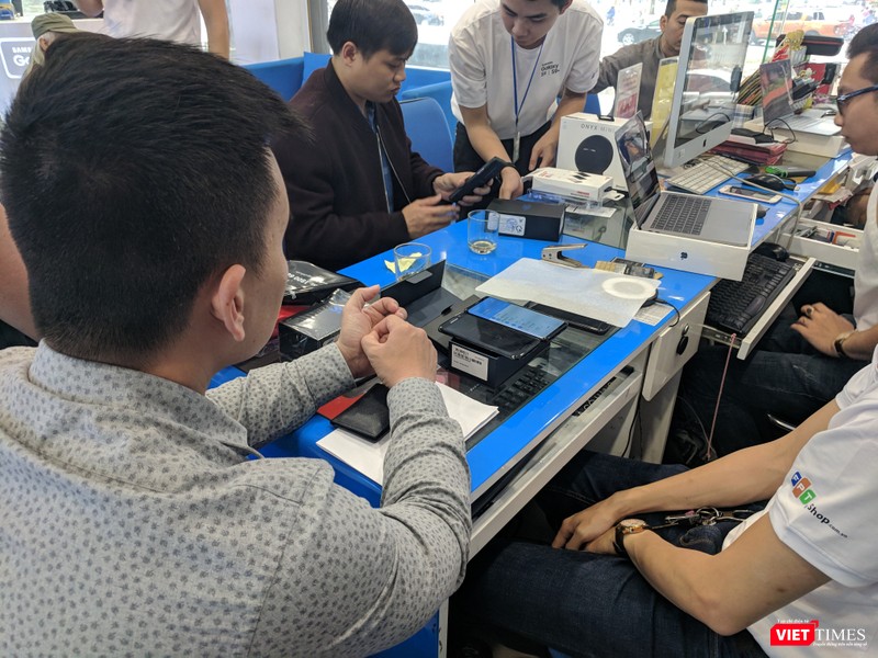 Các cửa hàng tại Thái Hà như FPT Shop, Thegioididong, CellPhoneS đã rộn ràng tổ chức sự kiện ra mắt Galaxy S9/S9+ từ 8 giờ sáng ngày 16/3 với lượng người đến tham gia rất đông. Theo thống kê, số lượng máy đến tay khách hàng tại FPT Shop là khoảng 30 máy, Thegioididong là 40 máy, CellPhoneS là 23 máy.