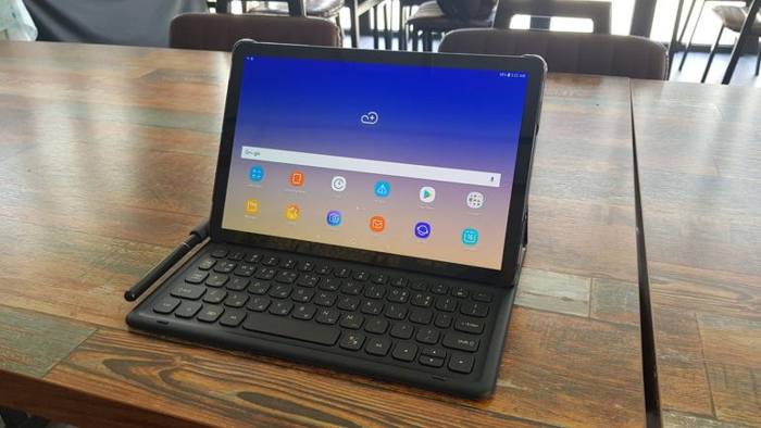 Galaxy Tab S4 khởi điểm ở mức 649,99 USD cho phiên bản 64GB bộ nhớ trong và 4GB RAM, phụ kiện bàn phím Book Cover Keyboard được bán rời với giá 149,99 USD.