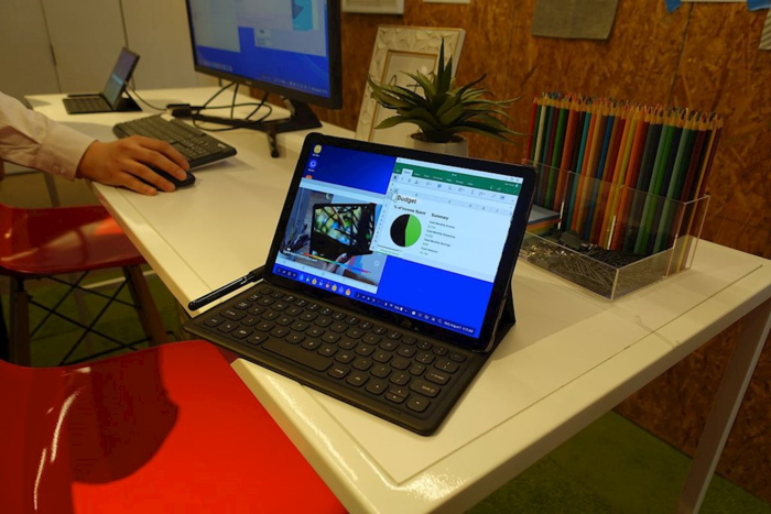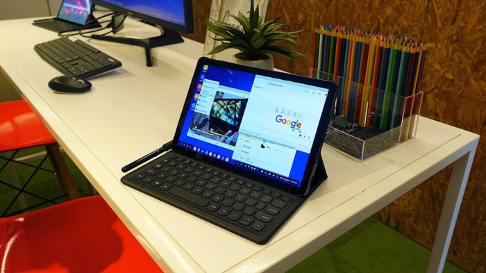Nhà sản xuất Hàn Quốc bước chân vào thị trường điện toán doanh nghiệp với tiêu chí sản phẩm 2 trong 1. Tab S4 được thiết kế để chạy như một thiết bị di động đồng thời có thể chuyển sang chạy ở chế độ giống PC, cho phép đa nhiệm cùng lúc nhiều ứng dụng trên màn hình lớn. Thiết bị sẽ chuyển sang chế độ PC khi được kết nối với phụ kiện bàn phím rời Book Cover Keyboard cùng DeX. DeX cho phép chế độ PC có thêm nhiều tính năng như tuy chỉnh kích thước cửa sổ, đa nhiệm, kéo-và-thả, đa màn hình với adapter HDMI sang USB-C, đồng thời giao diện PC được tối ưu hóa tối đa để làm việc với bàn phím và chuột.