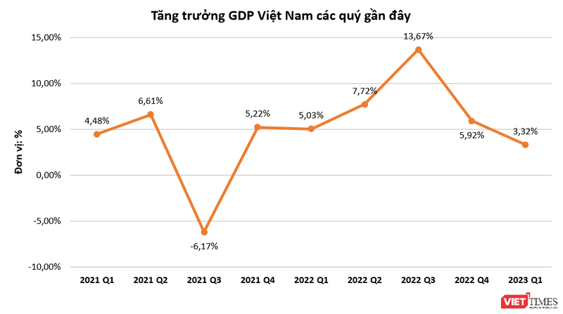 Về cơ cấu nền kinh tế quý 1/2023, khu vực nông, lâm nghiệp và thủy sản chiếm tỷ trọng 11,66%; khu vực công nghiệp và xây dựng chiếm 35,47%; khu vực dịch vụ chiếm 43,65%; thuế sản phẩm trừ trợ cấp sản phẩm chiếm 9,22% (cơ cấu tương ứng của cùng kỳ năm 2022 là 11,57%; 37,08%; 42,06%; 9,29%).