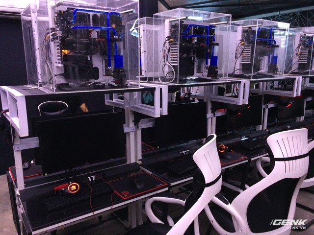 Hệ thống thấp cấp hơn, dùng card GeForce 1070 được trang bị tản nhiệt nước xanh dương để phân biệt.