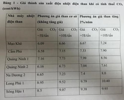 Từ các yếu tố đó, theo GREENID, giá điện năng từ thanh cái của các nhà máy nhiệt điện đốt than, nếu tính đầy đủ theo giá than của thị trường (bỏ trợ giá) tính cho phương án giá nhiên liệu tăng; tính theo phương án giá nguyên liệu tăng theo dự báo gía và cho trường hợp có tính đến phí cacbon dự kiến (5 USD và 10 USD/tấn CO2).