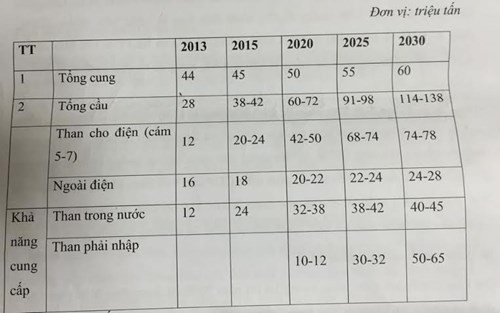 Dự kiến cán cân cung cầu than đến năm 2030 của GREENID